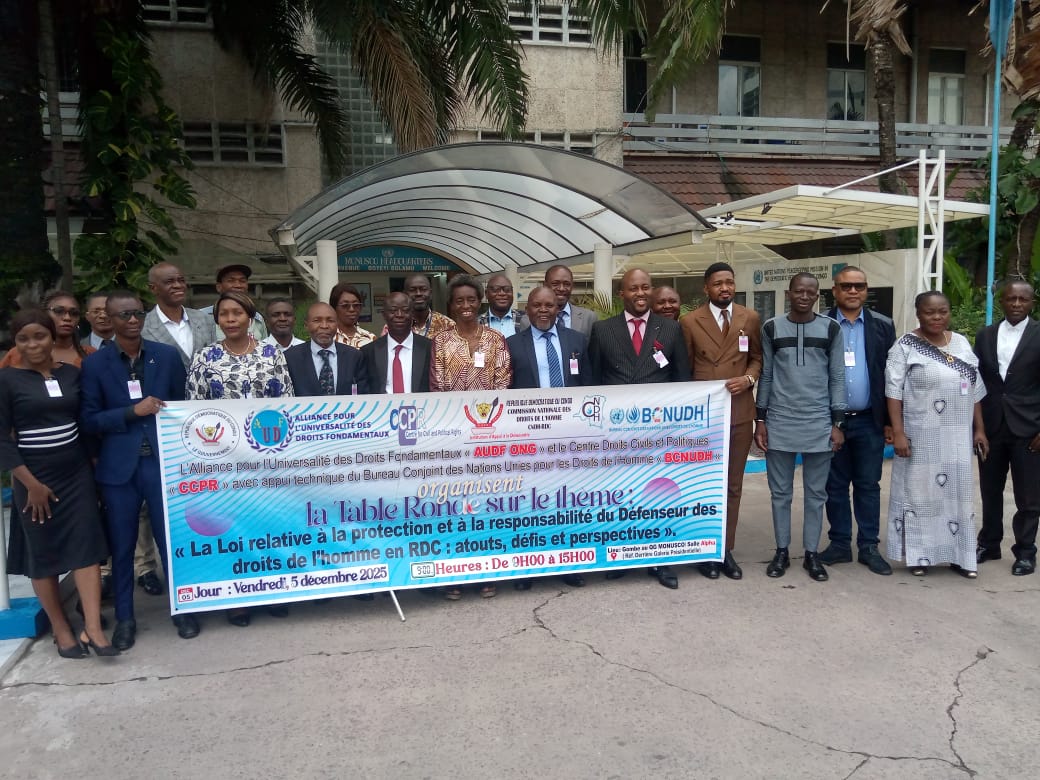 Le vendredi 6 décembre 2025, Kinshasa a accueilli une table ronde d'envergure consacrée à l'évaluation de la loi n°23/027 du 15 juin 2023 relative à la protection et à la responsabilité du défenseur des droits de l'homme. Organisée par l'ONG Alliance pour l'Universalité des Droits Fondamentaux (AUDF) et le Centre Droits Civils et Politiques (CCPR), cette rencontre a bénéficié de l'appui technique du Bureau Conjoint des Nations Unies aux Droits de l'Homme (BCNUDH) et de la Commission Nationale des Droits de l'Homme (CNDH-RDC).